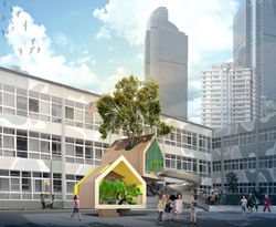 EDIBLE SCHOOL is based on a recreational and urban farming focused educational modular "tree houses" placed on empty fields or under utilised spaces.